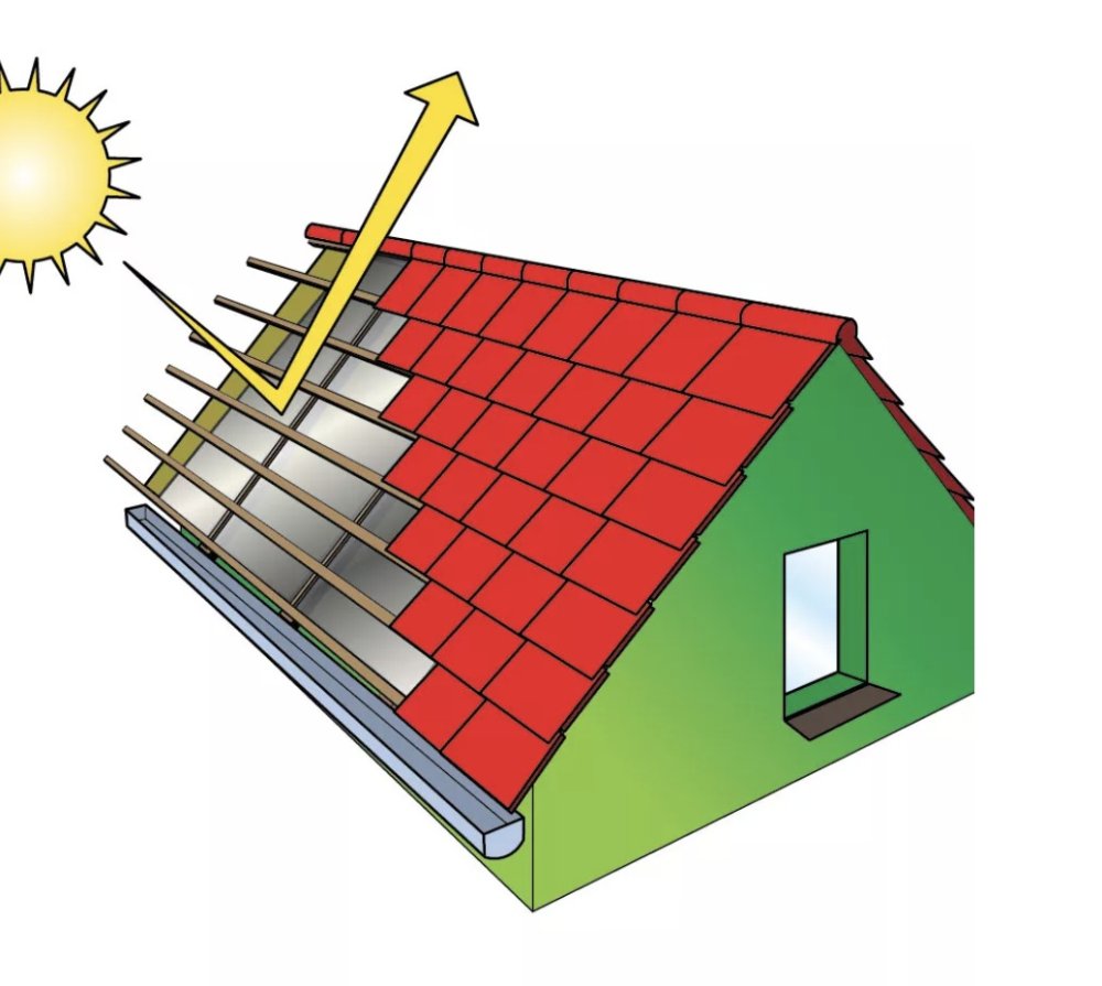 Problém řeší fólie SUNFLEX Contact PRO, která díky lesklé reflexní vrstvě odráží až 95 % sálavého tepla (emisivita 0,05). Tím se celý střešní systém SUNFLEX PRO méně zahřívá. Teplotní rozdíl v podkroví při použití této fólie oproti skladbě s klasickou černou difúzní fólií činí až osm stupňů Celsia. Fólie pracuje na stejném principu i ve fasádních systémech.